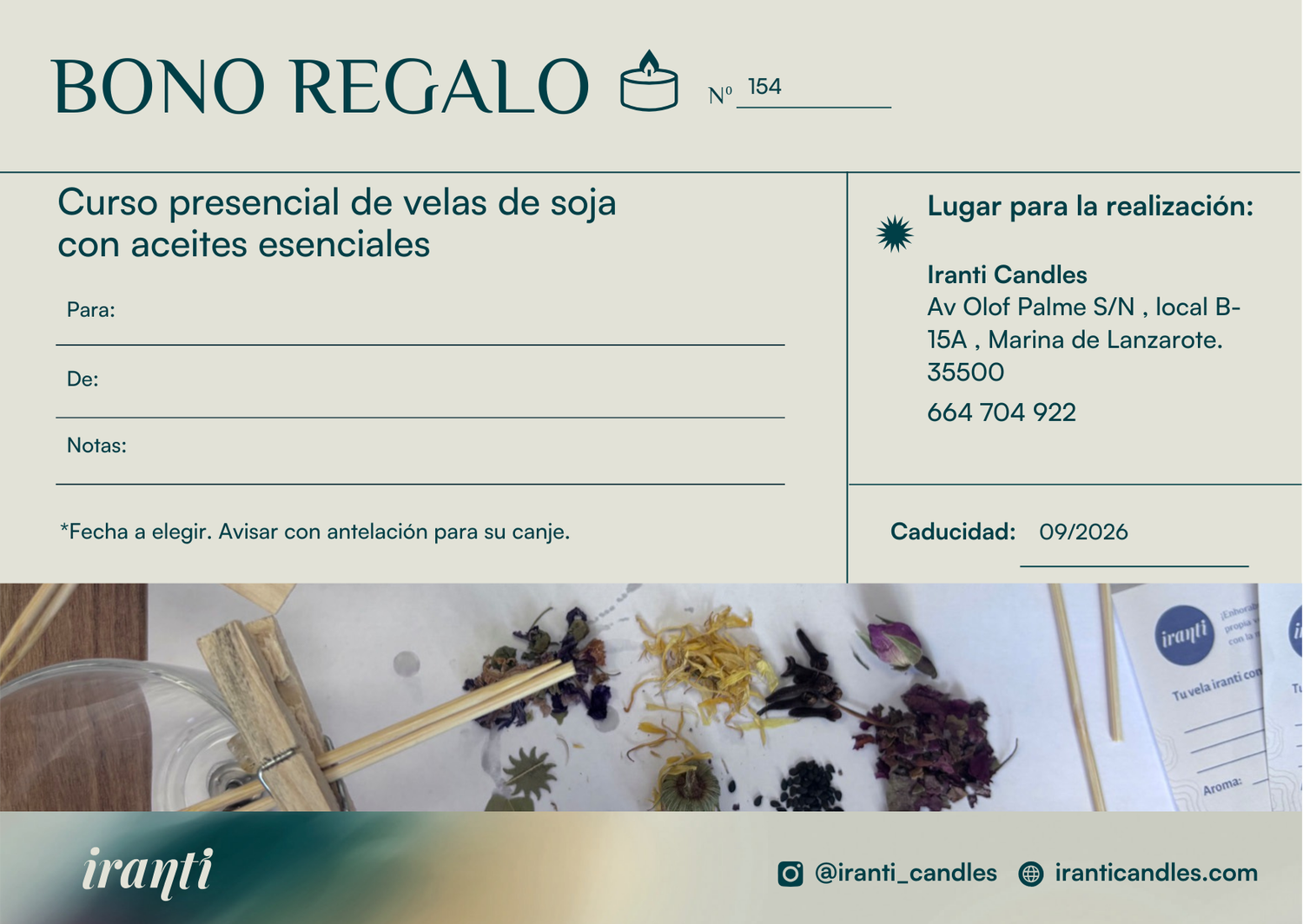 BONO REGALO - Taller de Velas de Soja Lanzarote.